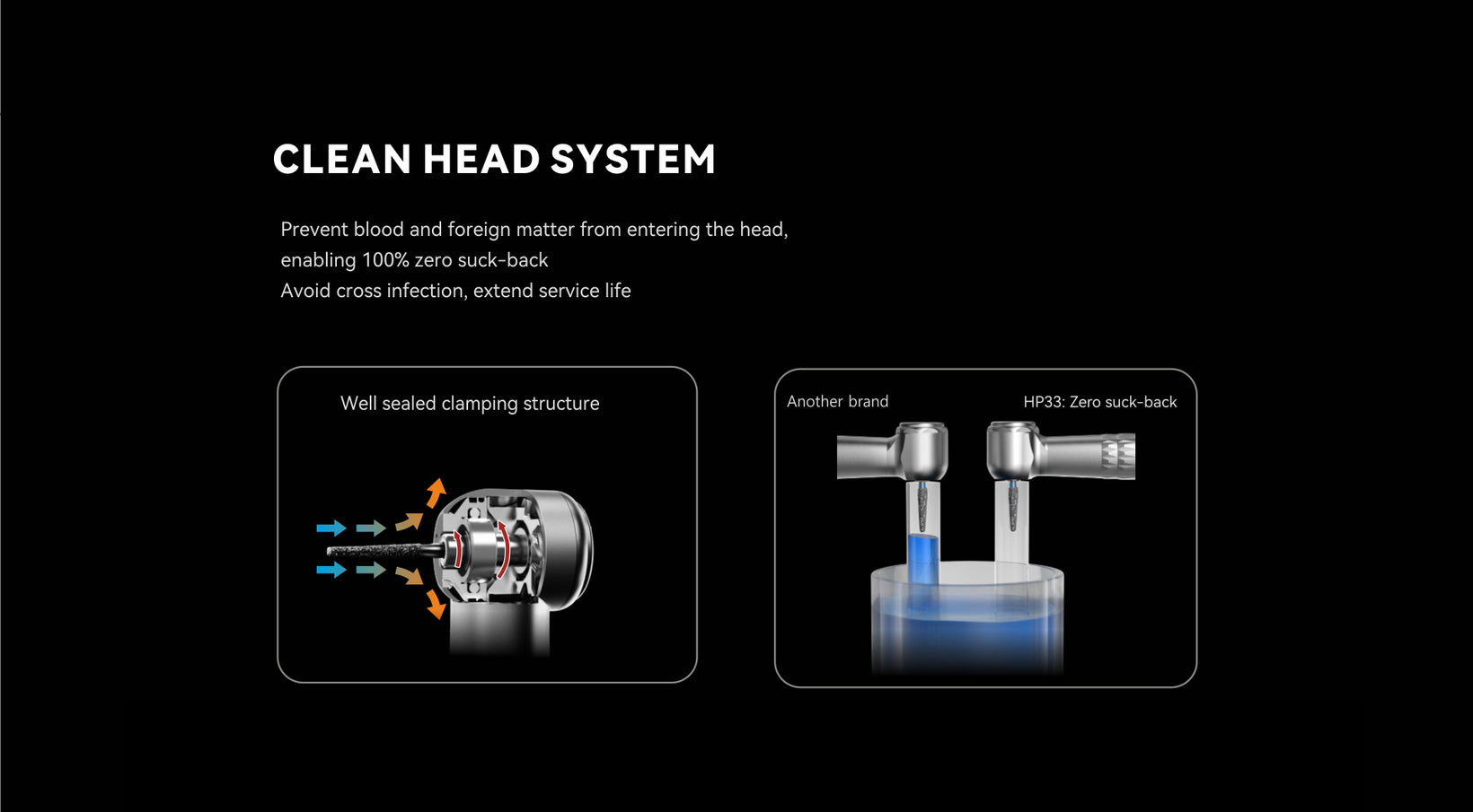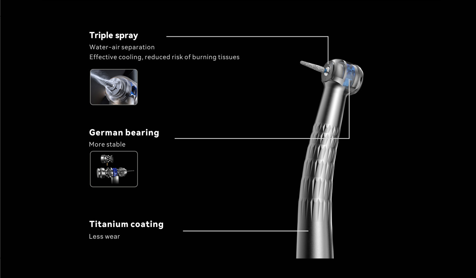 - The latest designed handpiece head angle, better operation visual and angle, improve working efficiency.