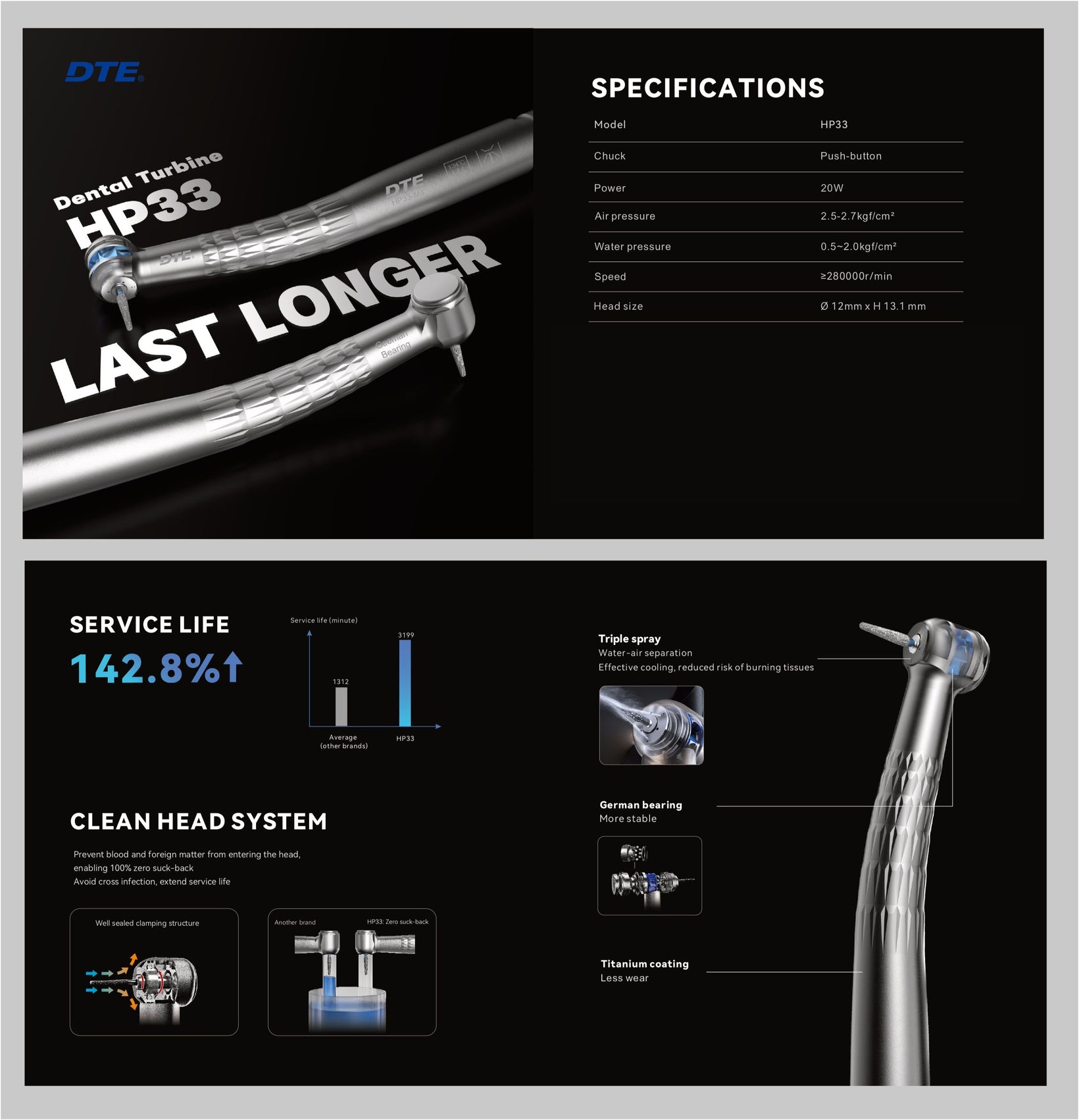 DTE/Woodpecker Dental Turbine Fast Handpiece HP33 | VSDent