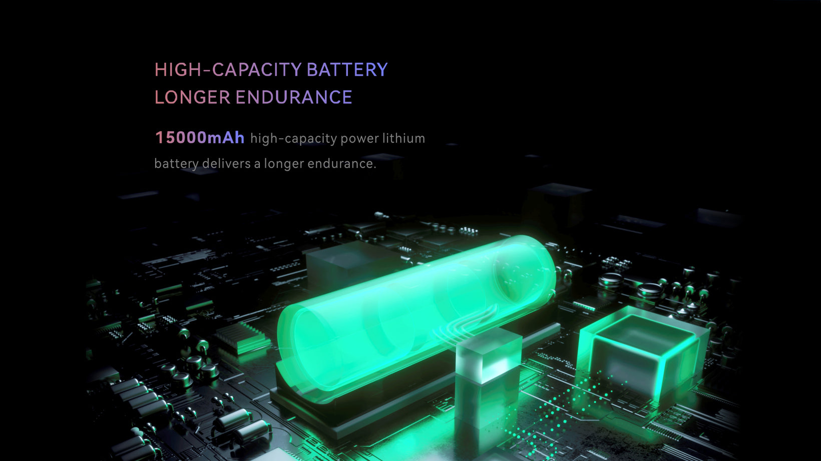 - 15000mAh high-capacity power lithium battery for longer endurance