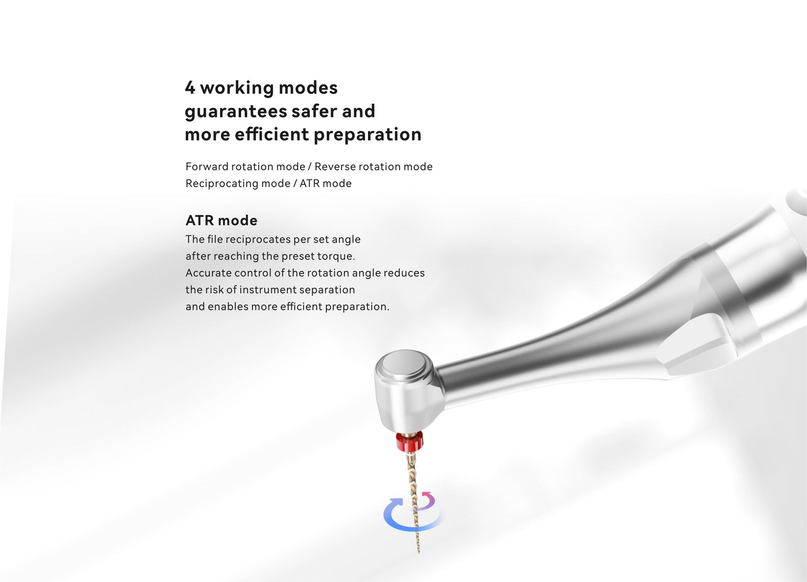 - This option gives the possibility of an exact angle of rotation, which subsequently reduces the risk of breaking the instrument and allows higher productivity