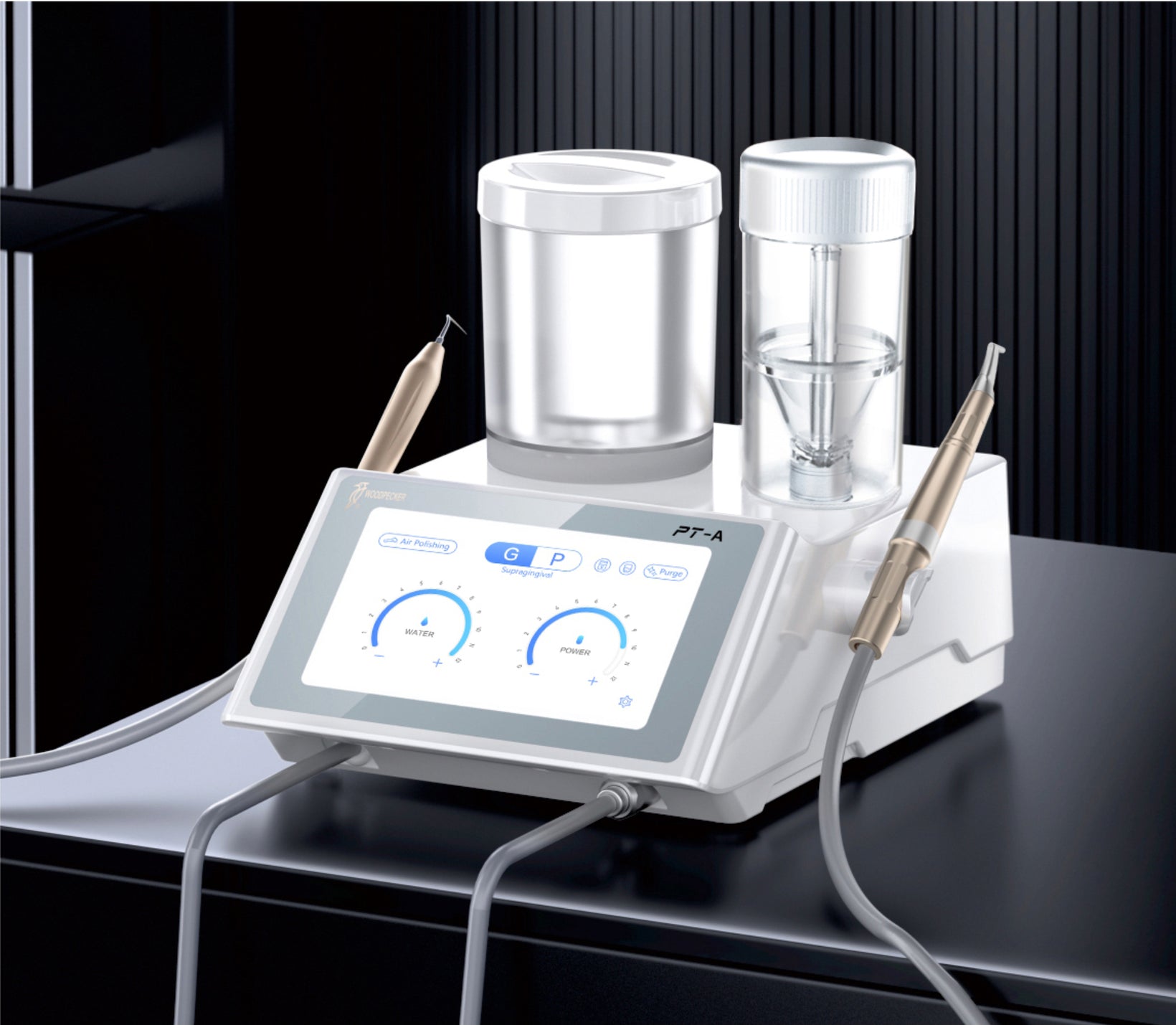 The Woodpecker PT-A is an advanced ultrasonic scaler and air polisher that offers a one-stop shop for maintenance, perio prevention, and polishing. The device is distinguished by its exceptional ergonomics, accuracy, simple maintenance, and adherence to the strictest hygiene regulations. Its design has been centered around providing the expert and the patient with the minimum discomfort while maximising performance.