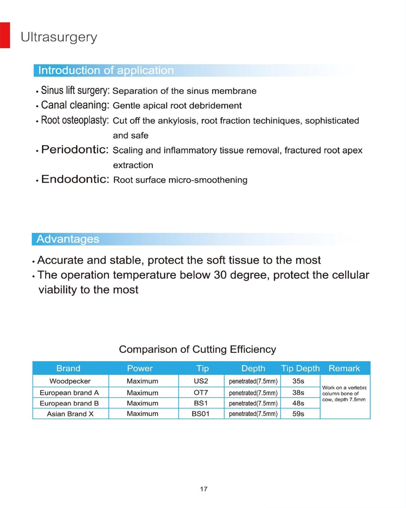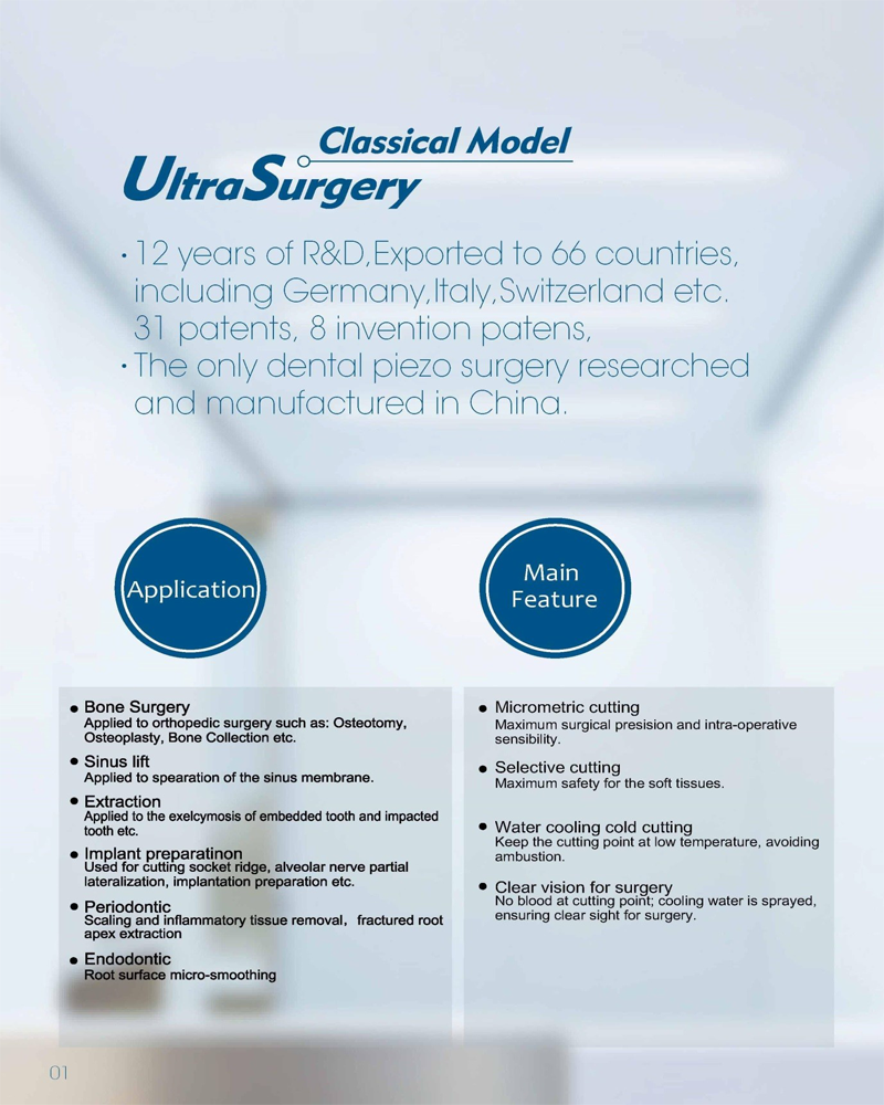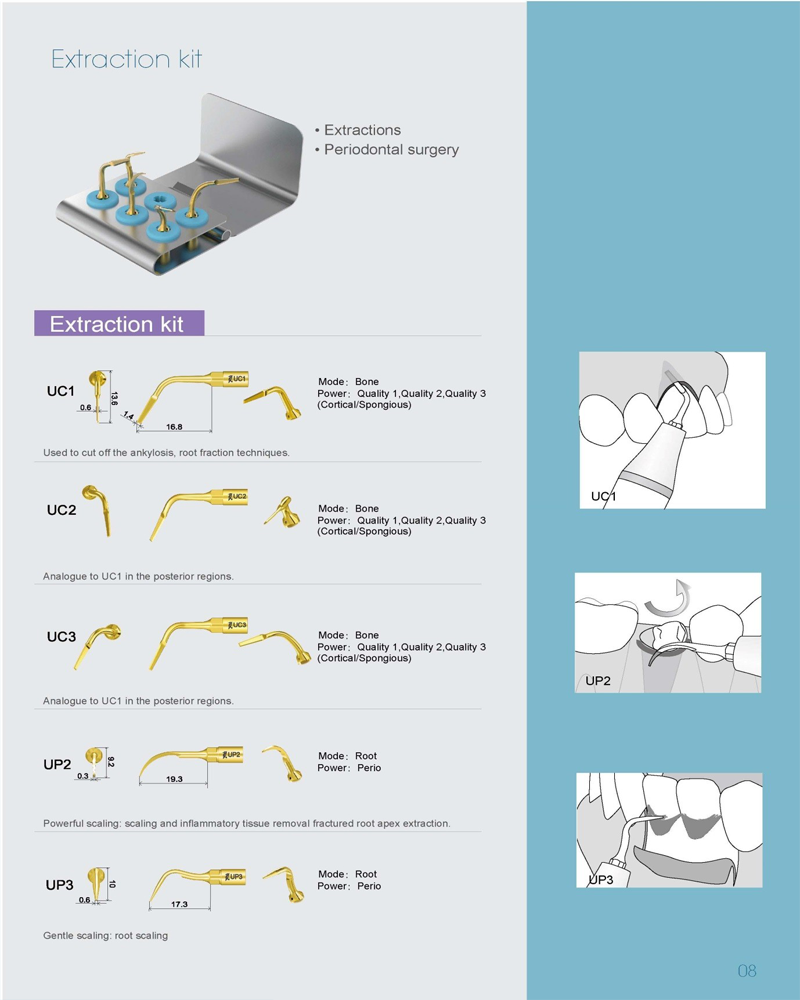 - Versatile application: Bone surgery, sinus lifting, extraction, implant preparation, periodontic, and endodontic