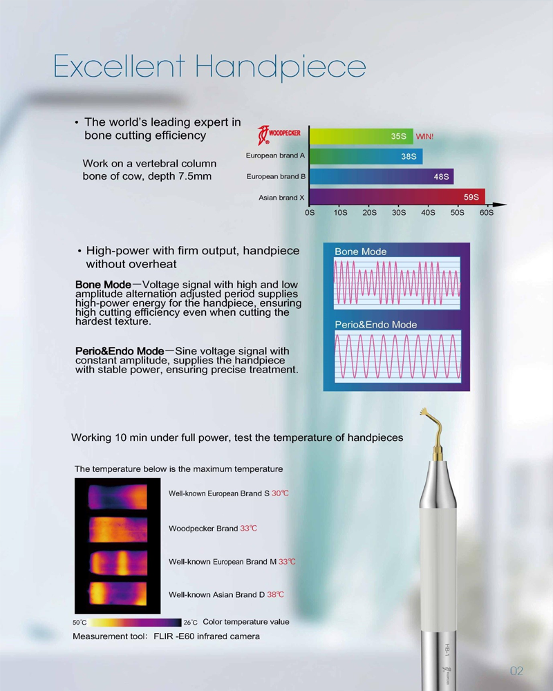 - Robust working modes: Bone modes offer high cutting efficiency, while perio & endo modes ensure precise treatment with stable power output