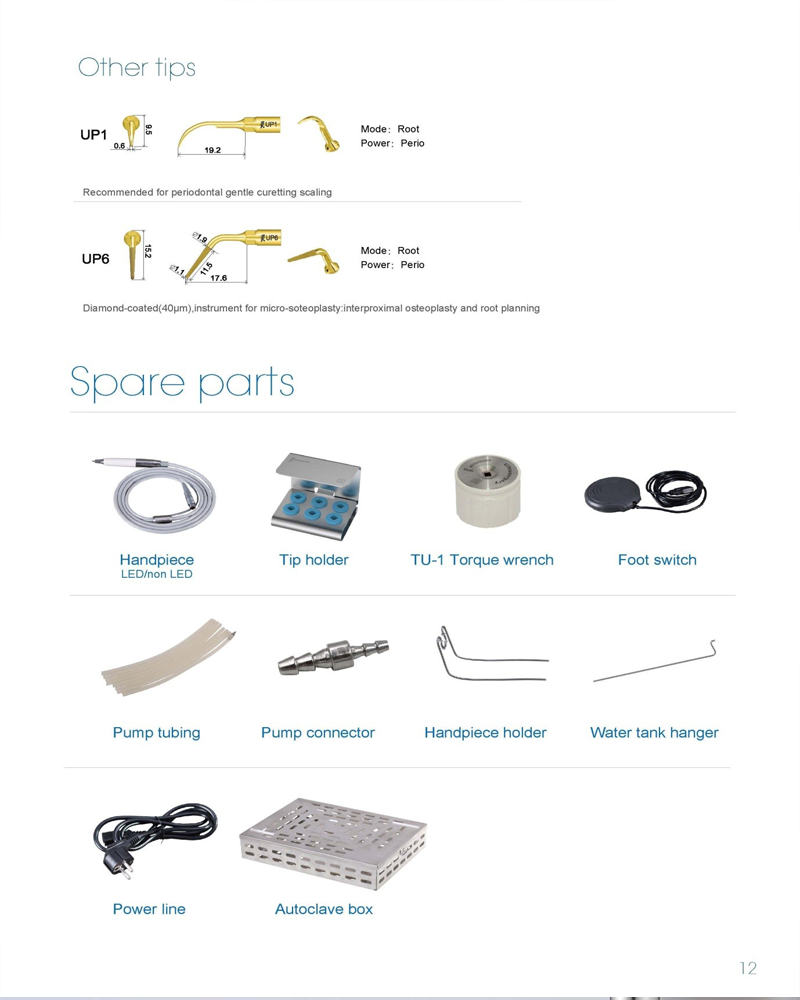 - The handpiece, cable, tip holder, working tip and torque wrenches can be autoclaved under the high temperature of 135°C and the pressure of 0.22 MPa