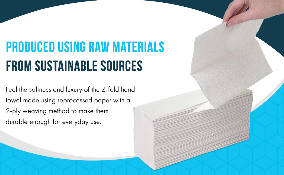Z-Fold Paper Hand Towels are durable 2-ply hand towels that come in a Z-fold design, which is exceptionally soft, sturdy, and absorbent. Due to their recyclable nature, they are easily disposed of.