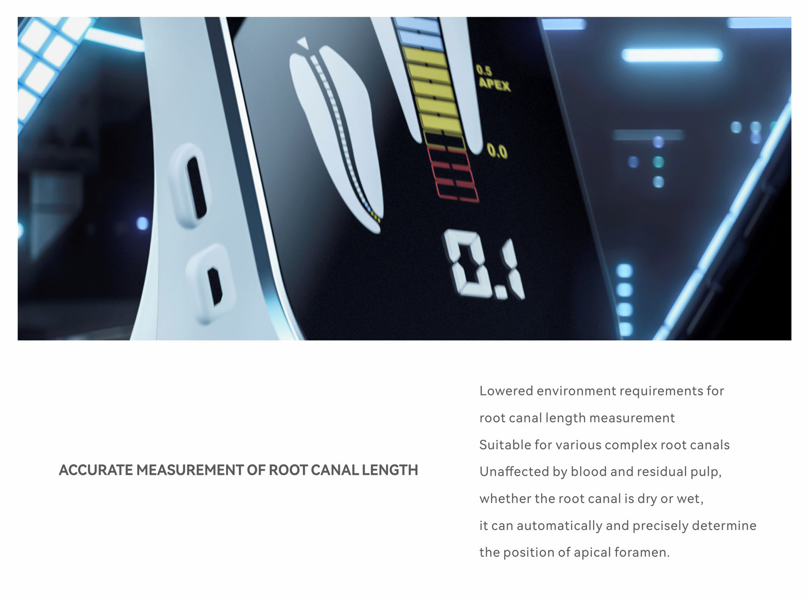 Apex locator is a supporting equipment of endodontic treatment, through the measurement of the length of apical teeth, helping dentists to finish the endodontic treatment.Equipped with clear bright LCD, a clear images and different colors indicate the trajectory of the file clearly.Based on advanced multiple frequency network impedance measurement technology and automatic calibrating ensure the measurements are accurate.