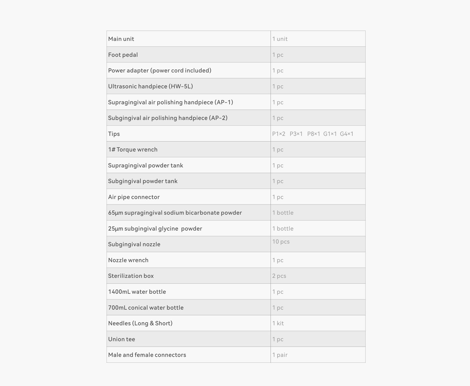 - 1 x Subgingival air polishing handpiece (AP-2)