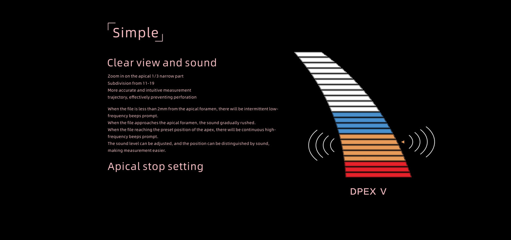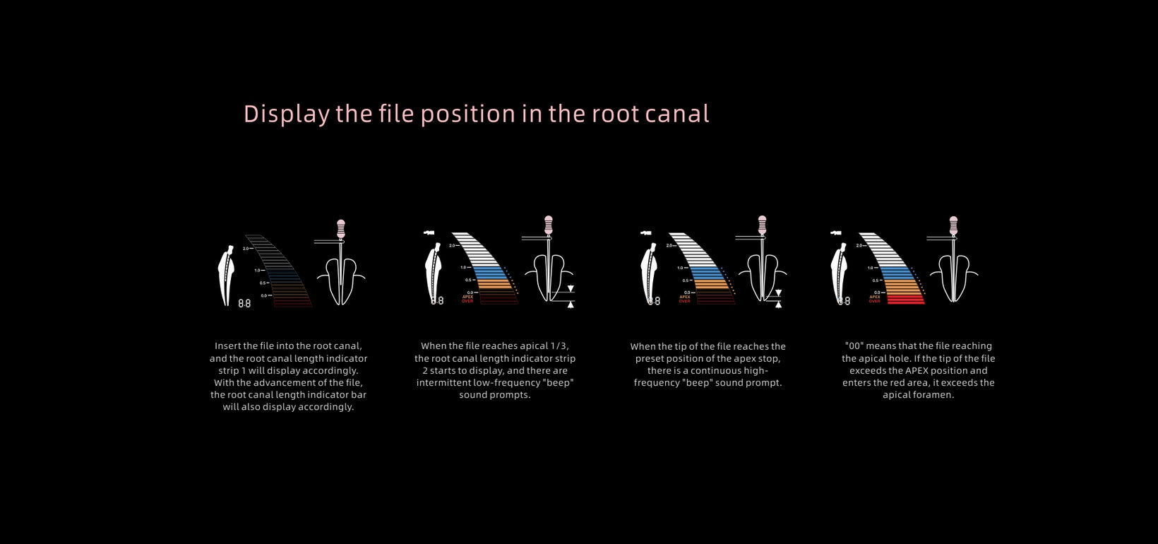 - Multi-frequency technology with the ability to measure accurately when blood and residual pulp are in the root canal