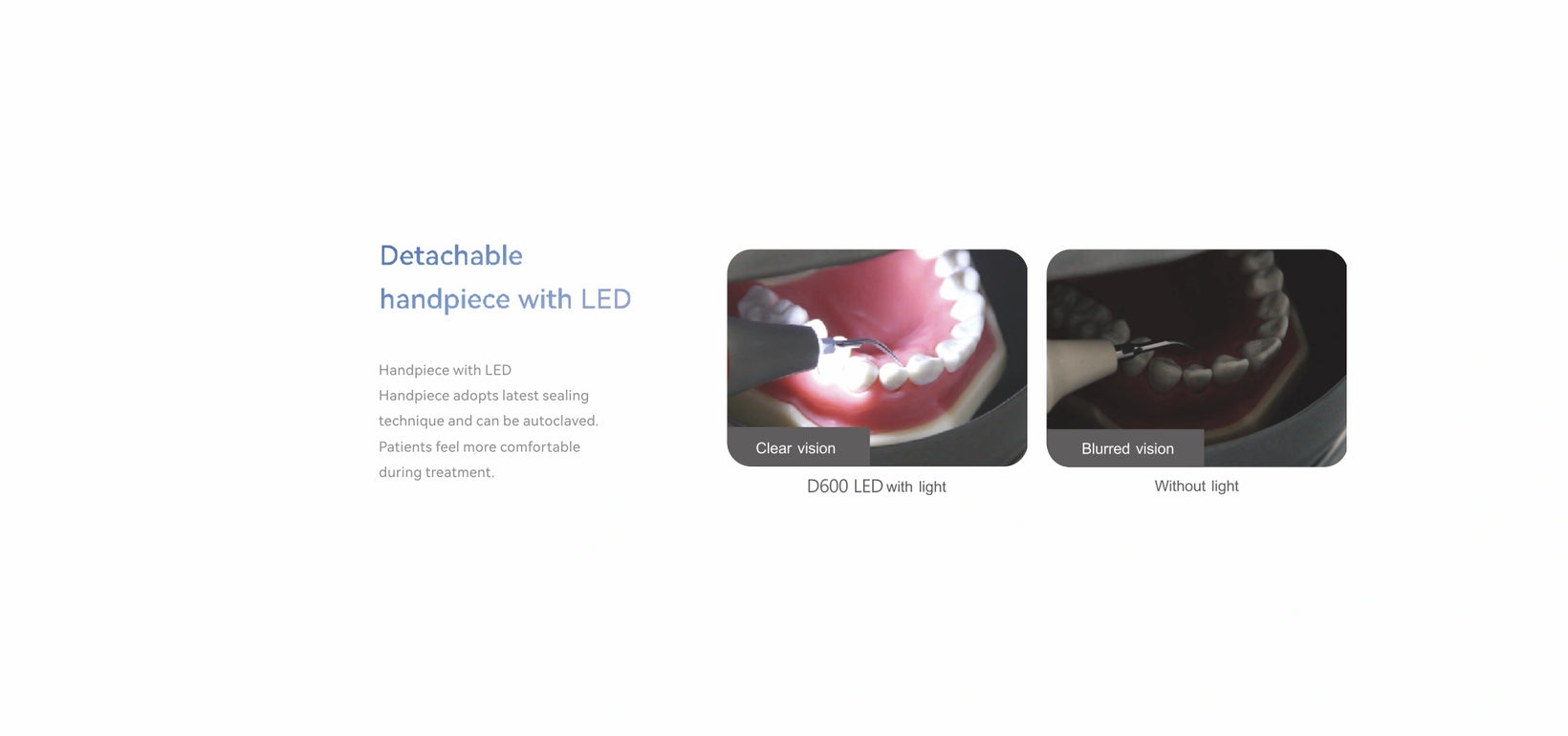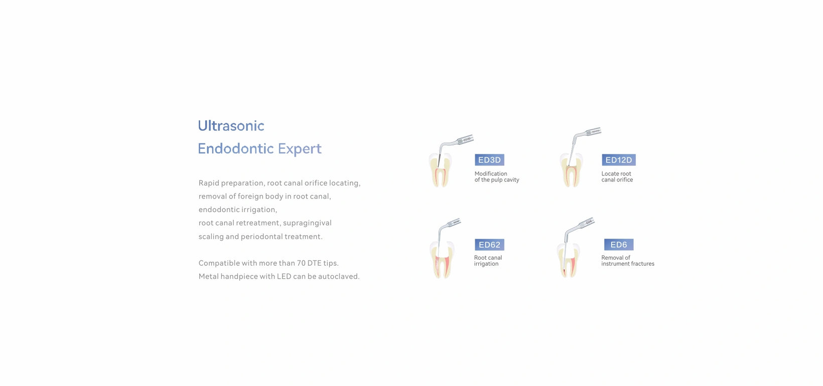 - Optimum vibration of tips with intelligent negative feedback to ensure more comfortable scaling