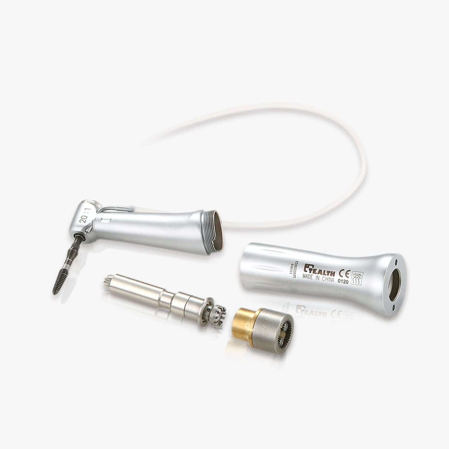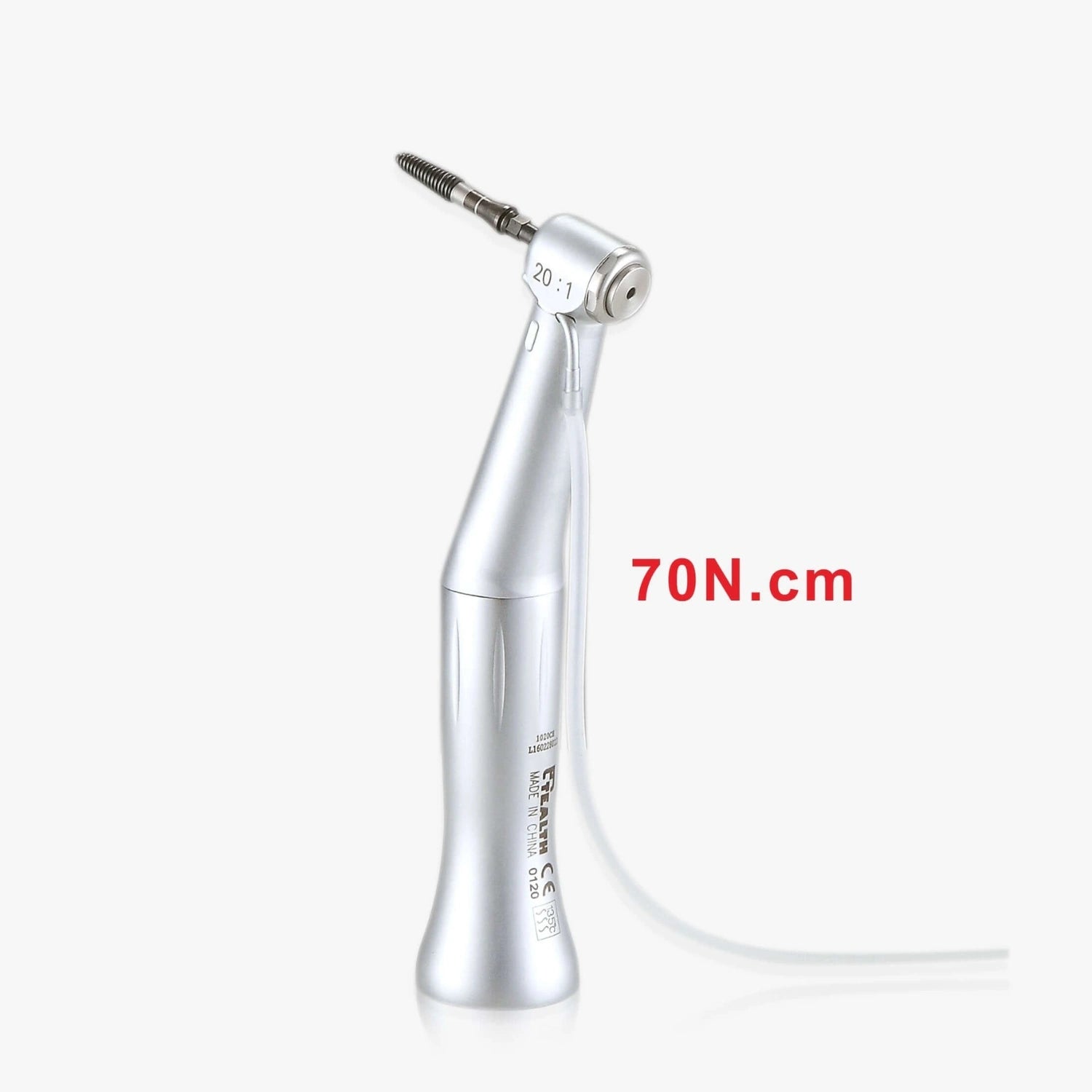 The 20:1 Implant Handpiece is a high-performance dental instrument engineered for precision and reliability in implantology procedures. Capable of reaching speeds up to 40,000 RPM with a maximum torque of 70 Ncm, this handpiece delivers the power and control necessary for complex dental implants.